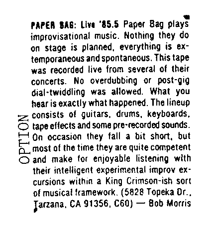 "85.5" review, Option Magazine, '85